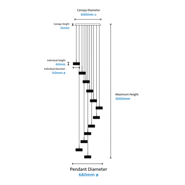 - Sculptural cascading design — cluster arrangement creates stunning visual drama, perfect for high-ceilinged living spaces and contemporary interiors